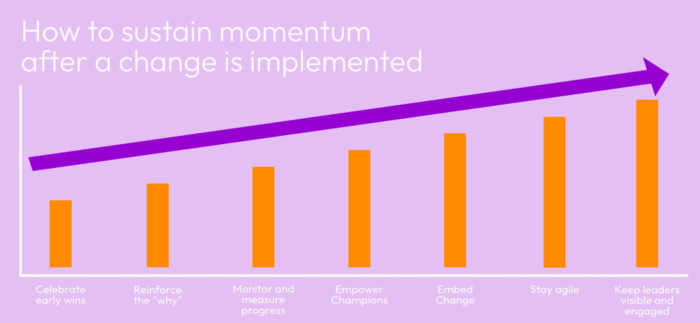 Implementing change within an organisation is often seen as the finish line, but in reality, it’s just the beginning. Whether you’re rolling out a new system, restructuring a department, or driving cultural transformation, sustaining momentum after the initial implementation is critical to ensuring long-term success.